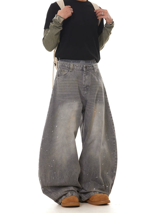 TJ10107 Baggy Gray Washed Distressed Paint Splash Jeans