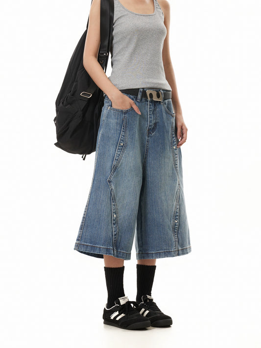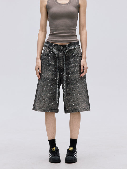 TJ10103 Baggy Starry Diamond Jeans Shorts