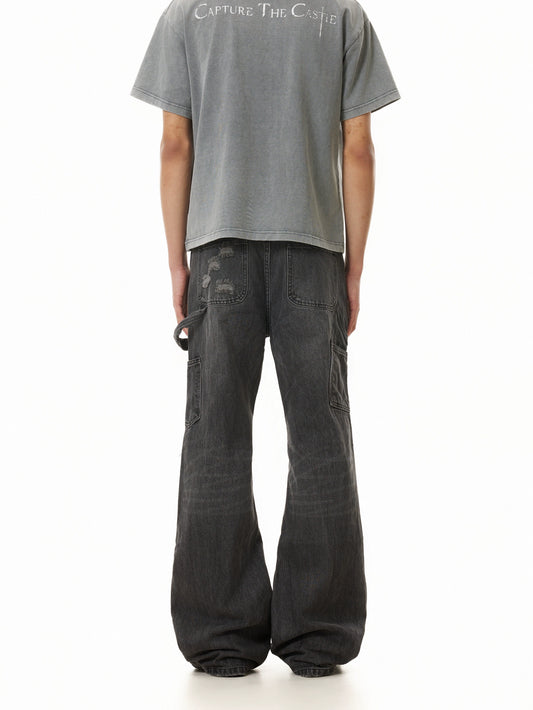 TJ10117 Distressed Gray Washed Flare Jeans